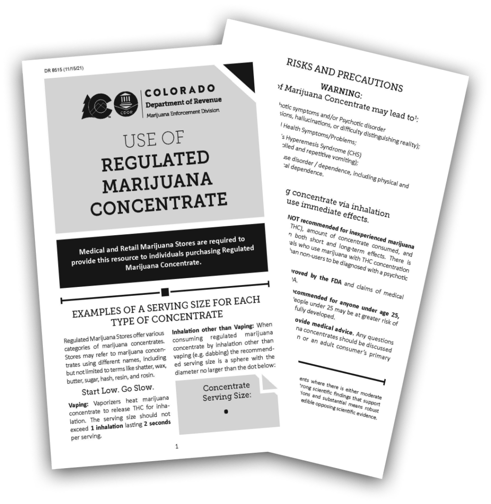 Read the State of Colorado’s warning about marijuana concentrates.
