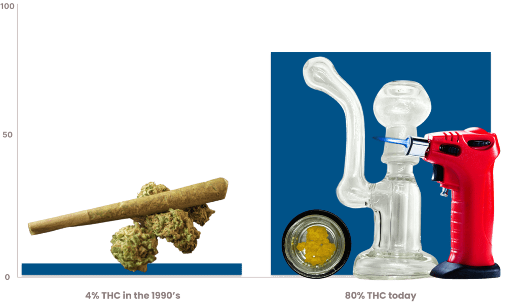 In the early 1990s, the average THC content in marijuana samples was less than 4%. Today it can exceed 80%.